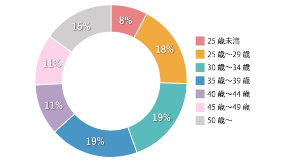 特に30代の方が多く登録しており、十分経験があり即戦力になりうる方が多くいます。そのため、ご紹介の際には貴社のお役に立つ人材をご紹介可能です。
